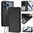 Capa com Carteira FLOODKING para iPhone 17 Pro Max | Fecho Magnético | RFID | Carregamento Sem Fios | Preto