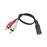 Cabo adaptador Orysin 3,5 mm fêmea para 2 RCA macho. Permite conectar dispositivos com saída estéreo a equipamentos com entrada RCA.
