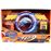 O brinquedo pode ser facilmente transformado entre o modo escudo e o modo lançador de dardos com o pressionar de um botão. Funciona com um mecanismo de ação de bombeamento e não requer baterias. Embalagem: Caixa litografada com janela.