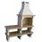 A Churrasqueira Modelo Turia utiliza carvão ou lenha, prática montagem modular, útil para 7 pessoas, ideal para todos os tipos de alimentos que podem ser grelhados. acabamento com textura de pedra artificial bege, principais materiais em sua estrutura (cimento e tijolo refratário). A espessura de suas bases proporciona perfeita segurança após a instalação.