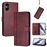 Capa FOXDOCK para Sony Xperia 5 VI 2024 | Estilo Vintage | TPU com Textura de Pele Antiderrapante | Compartimentos para Cartões e Suporte | Vermelho
