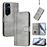 Capa FOXDOCK para Tecno Pova Neo 2 | Estilo Vintage | TPU com Textura de Pele Antiderrapante | Compartimentos para Cartões e Suporte | Cinza