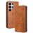 Capa FOXDOCK para Samsung Galaxy S25 Ultra | Fecho Magnético | Estampado Vintage | Pele PU | Compartimentos para Cartões | Castanho