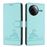 Capa Wallet para Xiaomi Poco F7 Ultra 5G com Suporte, Bloqueio RFID e Fecho Magnético - Estampa em Relevo de Gatinho-Verde