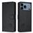 Capa Wallet para iPhone 17 Pro com Suporte, Bloqueio RFID e Fecho Magnético - Estampa em Relevo de Gatinho-Preto