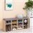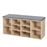 armário para sapatos VALORA com assento - LHS10NLV1 é um complemento prático e elegante para qualquer hall de entrada ou corredor. Fabricado em aglomerado de madeira resistente de classe E1 com acabamento em carvalho rústico, este armário possui um assento confortável estofado em tecido de algodão que imita linho. Com dez prateleiras profundas, oferece amplo espaço para guardar sapatos, garantindo que seu espaço permaneça organizado e arrumado.